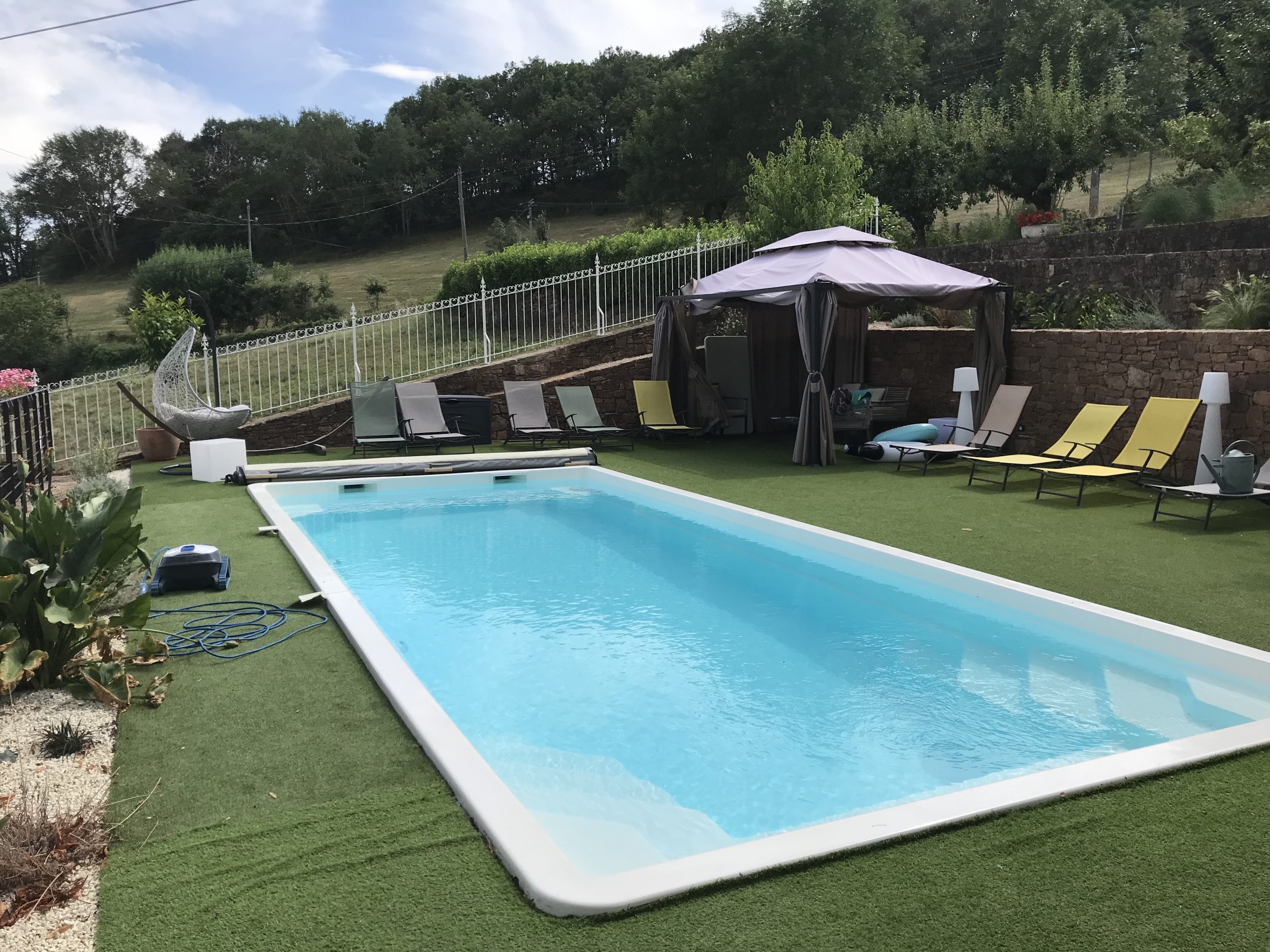 Accès à la piscine et aux transats pour profiter du calme et de la nature environnante après une belle randonnée.
