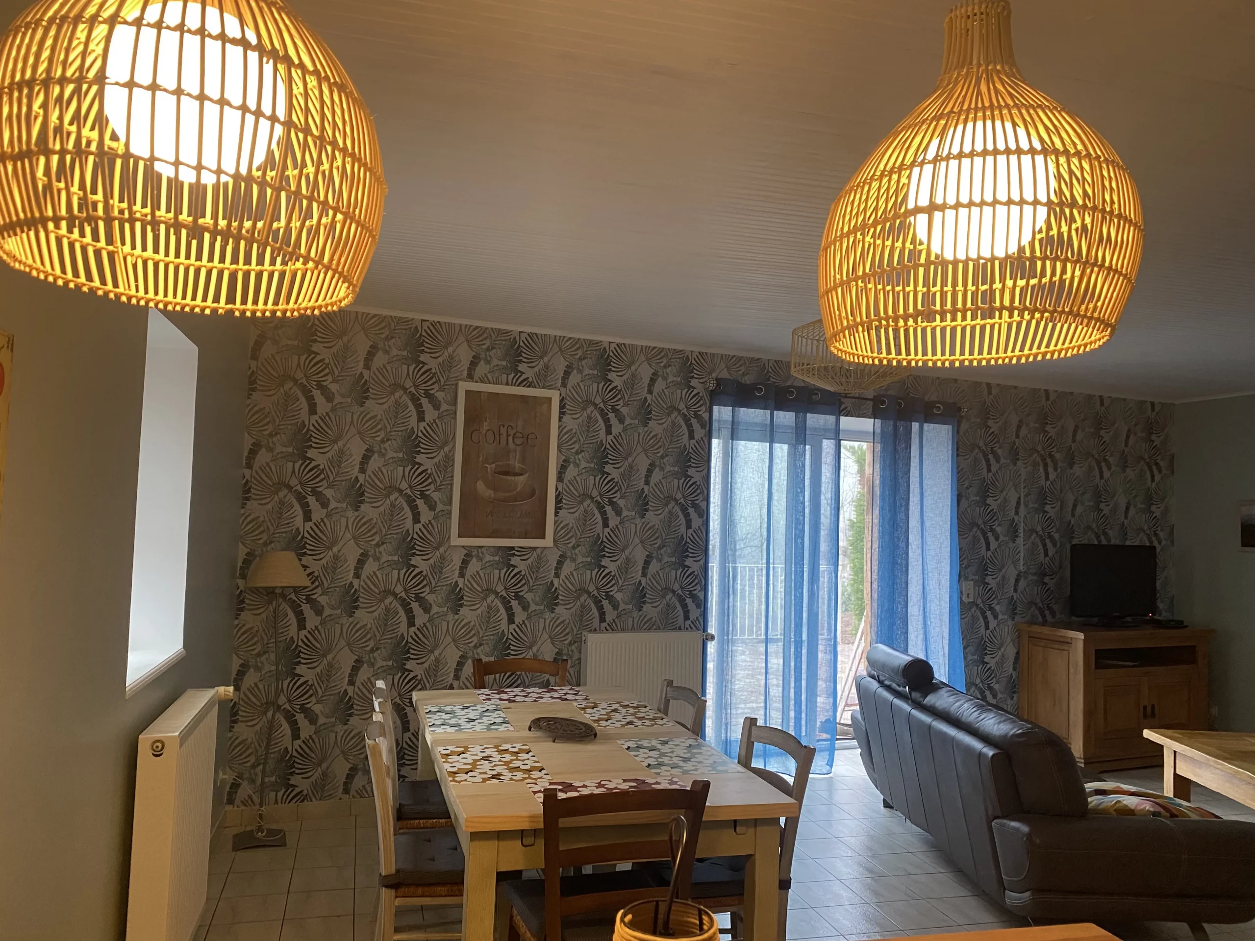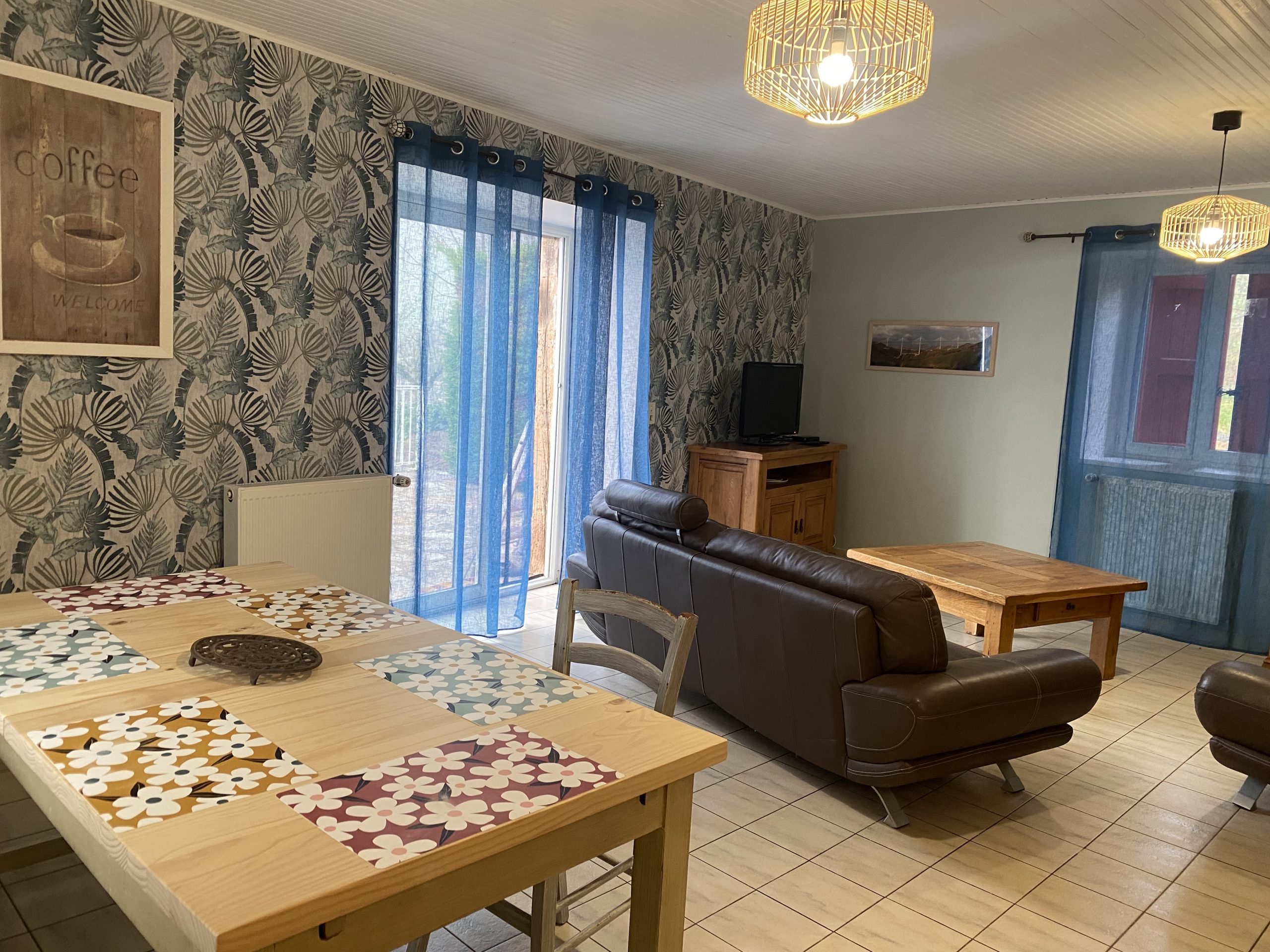 À votre disposition : table pouvant accueillir jusqu’à 10 personnes, 2 canapés, télévision, chaîne Hi-Fi, chauffage central (à bois), accès Internet / Wifi.